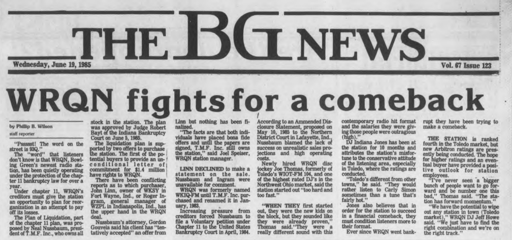WRQN 93.5 Bowling Green-Toledo, OH – September 1983