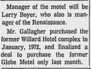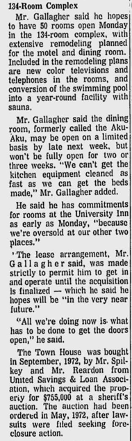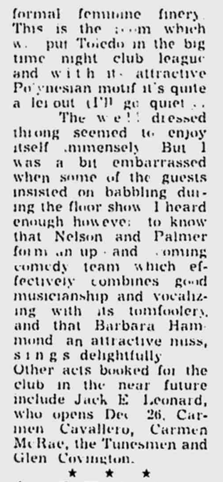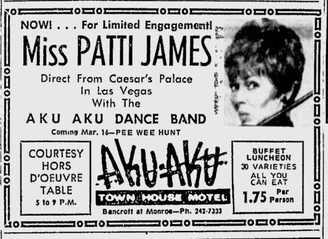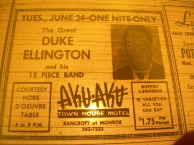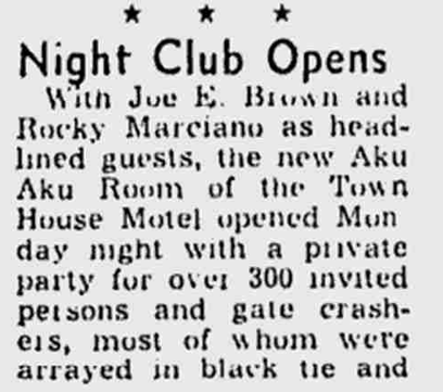 “The Aku-Aku Polynesian Room at the Town House Motel was one of the last great Polynesian supper clubs in Ohio. The hotel complex was originally supposed to be named the Stardust, but it was quickly changed due to another Stardust hotel being located in Las Vegas. The club was owned by Irving “Slick” Shapiro, a bookmaker with several arrests under his belt by the time the Aku-Aku officially opened on December 13, 1960. He was a gracious host with a sense of humor and often greeted people as they walked in the door. For over a decade, the place was famous for hosting some of the biggest names in the entertainment industry; Duke Ellington, Count Basie, Tony Bennett and the Glenn Miller Orchestra all played there.
