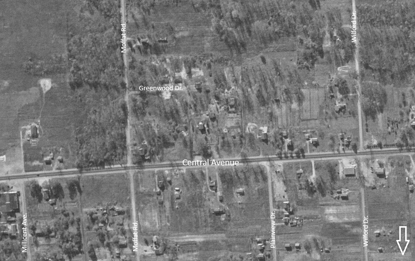 Greenwood Drive no longer exists. The US 23/Central Avenue interchange construction in 1962 erased Greenwood Drive and the homes that lined it.