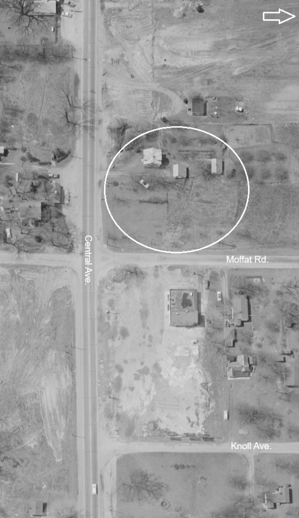 Note the two out buildings within the circle in the image above. Then note the same two out buildings in the image below.