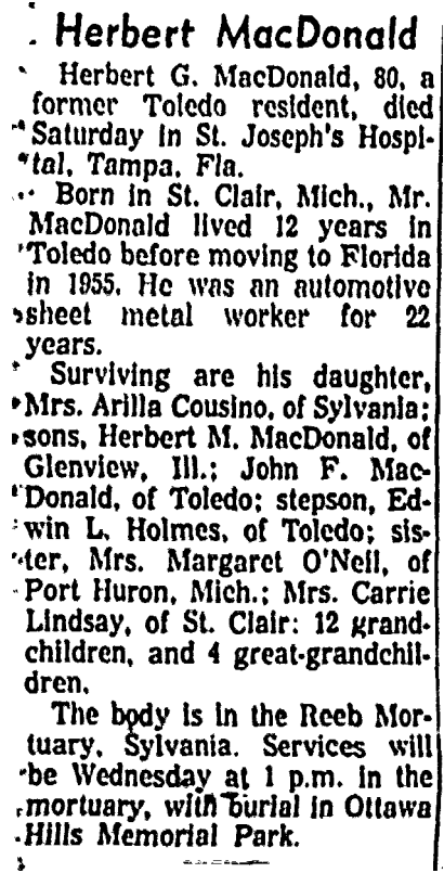 Built c1948. Herbert G. MacDonald is the father of John F. MacDonald who owned and operated Oaks Feed Company. The Herbert G. MacDonald home was either demolished or moved during the construction of I-475.